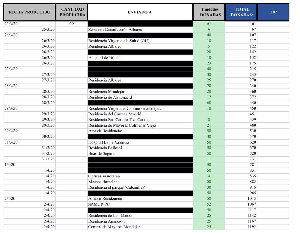 Nos siguen pidiendo viseras y toda la gente nos manda muchas muestras de agradecimiento al recibirlas. Nos sentimos inmensamente útiles.