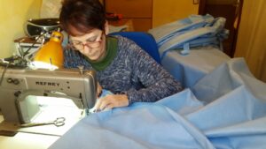 Así que la costura sigue acelerando su ritmo. Hemos llevado 1000 telas a Juanvi en Campo Real para que las corte, y en Albares ya están cortando 800. Con eso van a poder hacer entre 900 y 1000 batas, pero con el ritmo que llevan y lo que nos piden las costureras, no podemos parar. Y todavía nos quedarán otras 1000 telas en nuestro almacén para repartir.