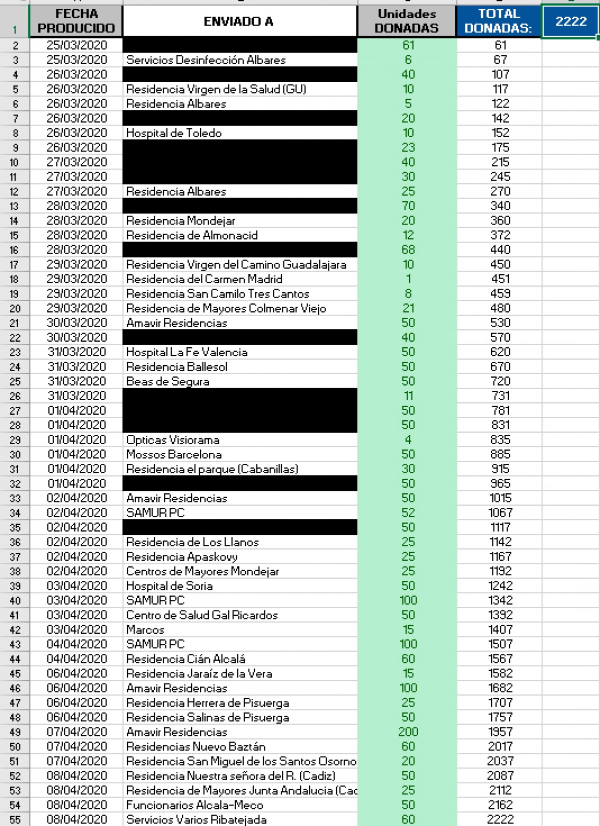 Ayer no hubo informe porque Tony Pelayo se quedó en casa para descansar un poco, pero se continuó trabajando. Se donaron 185 viseras para hacer un total de 2222 unidades.